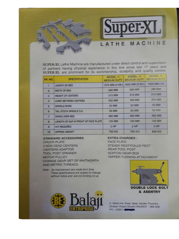 SUPER -XL ,Lathe machine are manufactured under direct control and supervision of partners having physical experience in this line since last 17 years and SUPER-XL prominent for workmanship, durability and quality control.